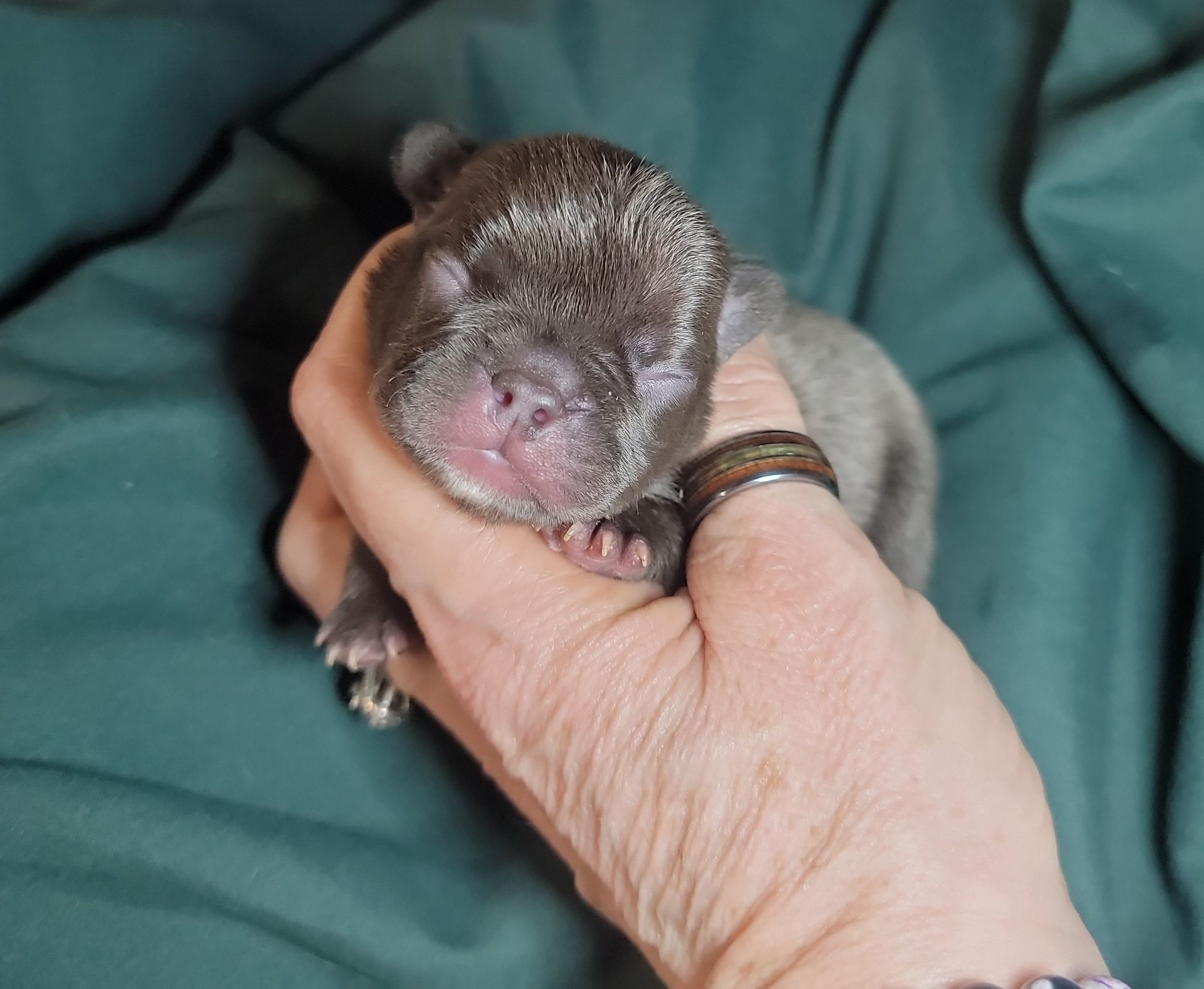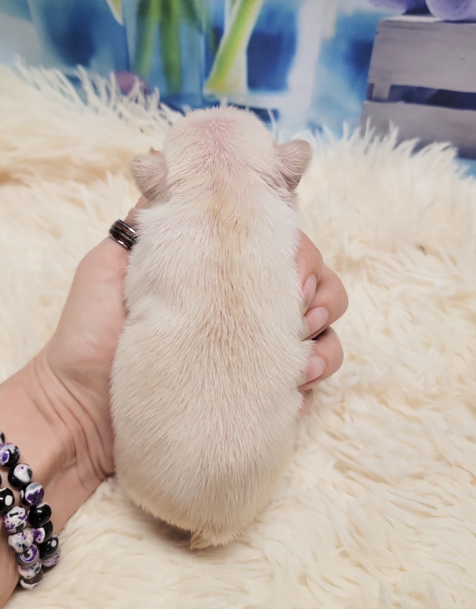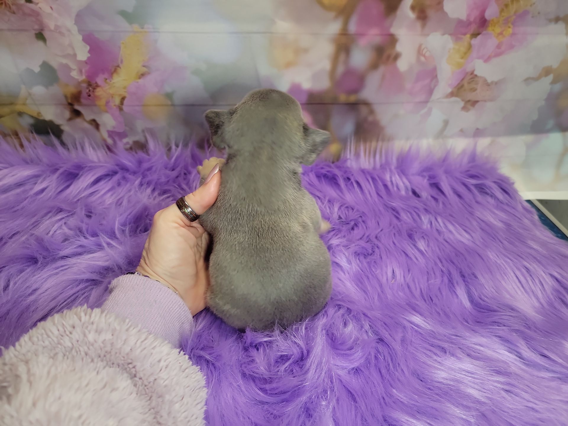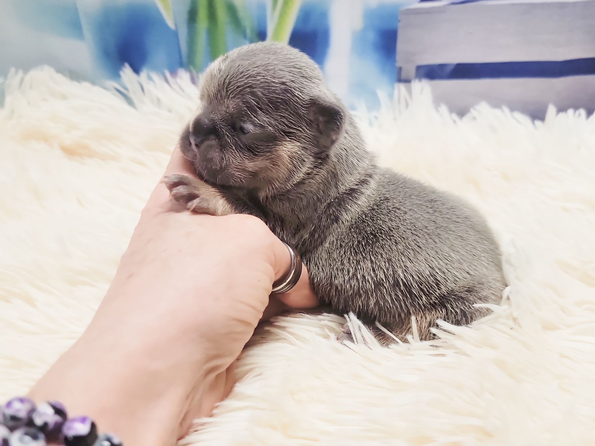Size and Health: My largest French Bulldogs are Miniatures weighing 19-14 pounds. Pockets are 13-9 pnds and Itty-Bittys are 8 pnds and under. I am not aware of any breeders producing purebreds of such tiny sizes. There is no difference in looks, since they aren't cross-bred, just smaller. Just as stocky and healthy as larger sizes, ethically bred without health issues. Health is dependent on breeders who don't breed for health issues and over-vaccinate, it has nothing to do with size. You won't find healthier Frenchies than these, which are Holistically raised and die of old age, NOT health issues. I've never had a single Frenchie with Cancer. Pockets necessitate meticulous care, residing in the specialized incubator I have crafted for their unique requirements. They are under constant monitoring round the clock and are taken out for feedings every two hours until they grow bigger. I keep them until they are older, a minimum of three months for Pockets and even longer for Itty-Bitty Pockets. As far as I know, I am the sole breeder worldwide breeding purebred French Bulldog Pockets weighing 13-9 pounds and Itty-Bitty Pockets weighing 8 pounds and under.