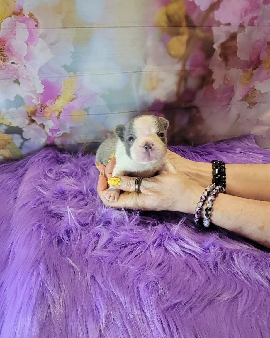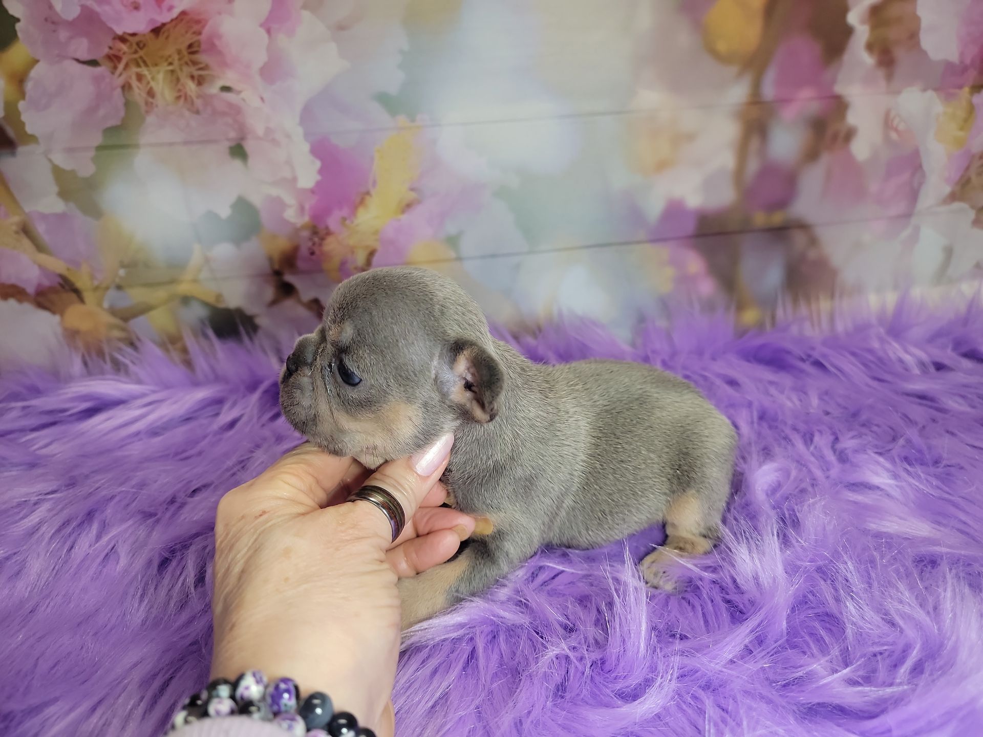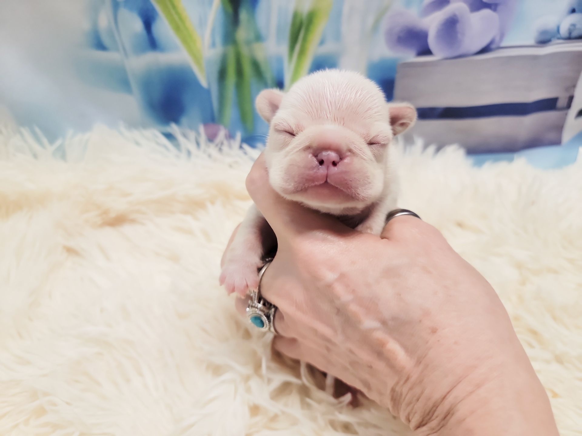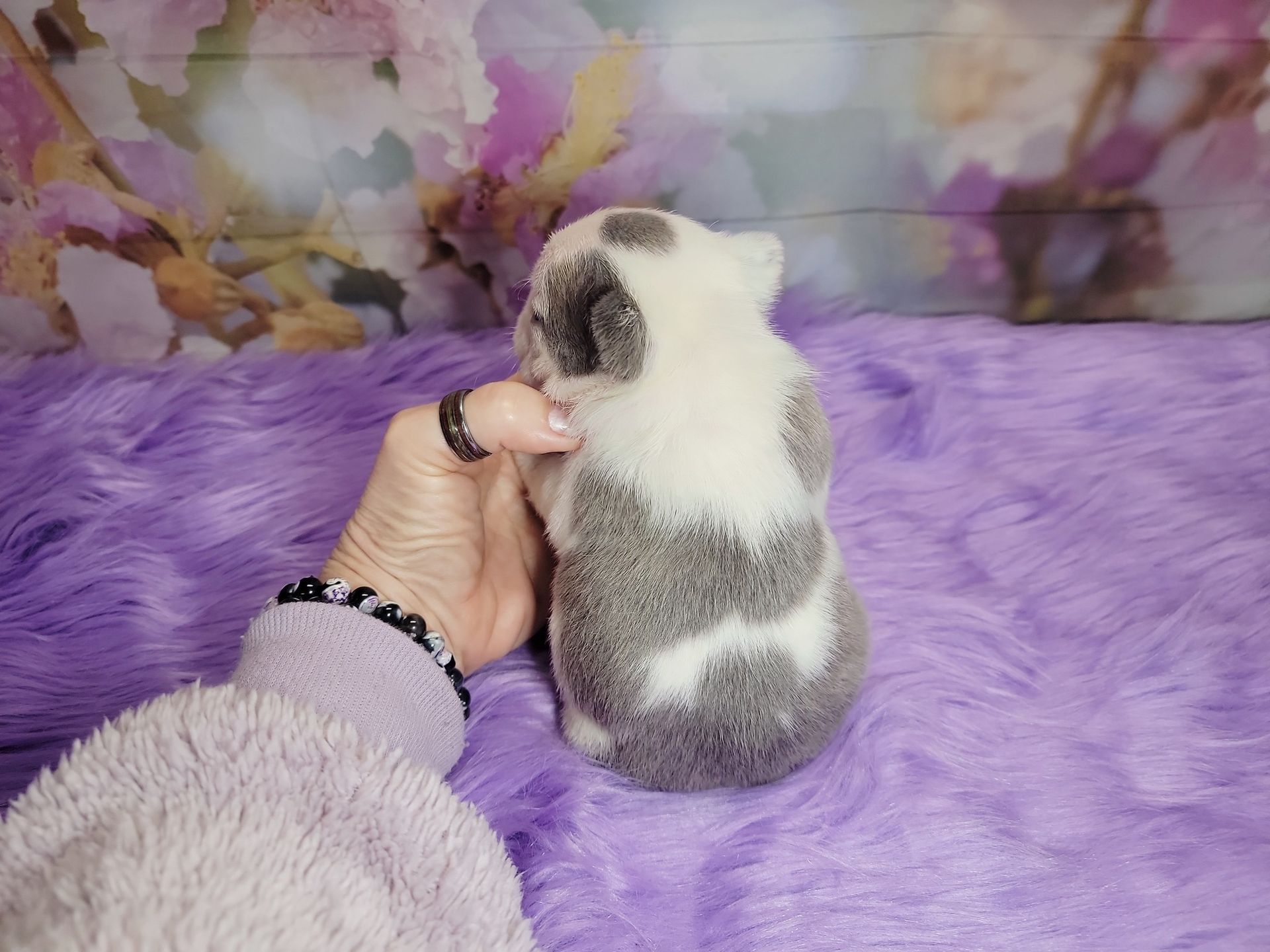 Size and Health: My largest French Bulldogs are Miniatures weighing 19-14 pounds. Pockets are 13-9 pnds and Itty-Bittys are 8 pnds and under. I am not aware of any breeders producing purebreds of such tiny sizes. There is no difference in looks, since they aren't cross-bred, just smaller. Just as stocky and healthy as larger sizes, ethically bred without health issues. Health is dependent on breeders who don't breed for health issues and over-vaccinate, it has nothing to do with size. You won't find healthier Frenchies than these, which are Holistically raised and die of old age, NOT health issues. I've never had a single Frenchie with Cancer. Pockets necessitate meticulous care, residing in the specialized incubator I have crafted for their unique requirements. They are under constant monitoring round the clock and are taken out for feedings every two hours until they grow bigger. I keep them until they are older, a minimum of three months for Pockets and even longer for Itty-Bitty Pockets. As far as I know, I am the sole breeder worldwide breeding purebred French Bulldog Pockets weighing 13-9 pounds and Itty-Bitty Pockets weighing 8 pounds and under.