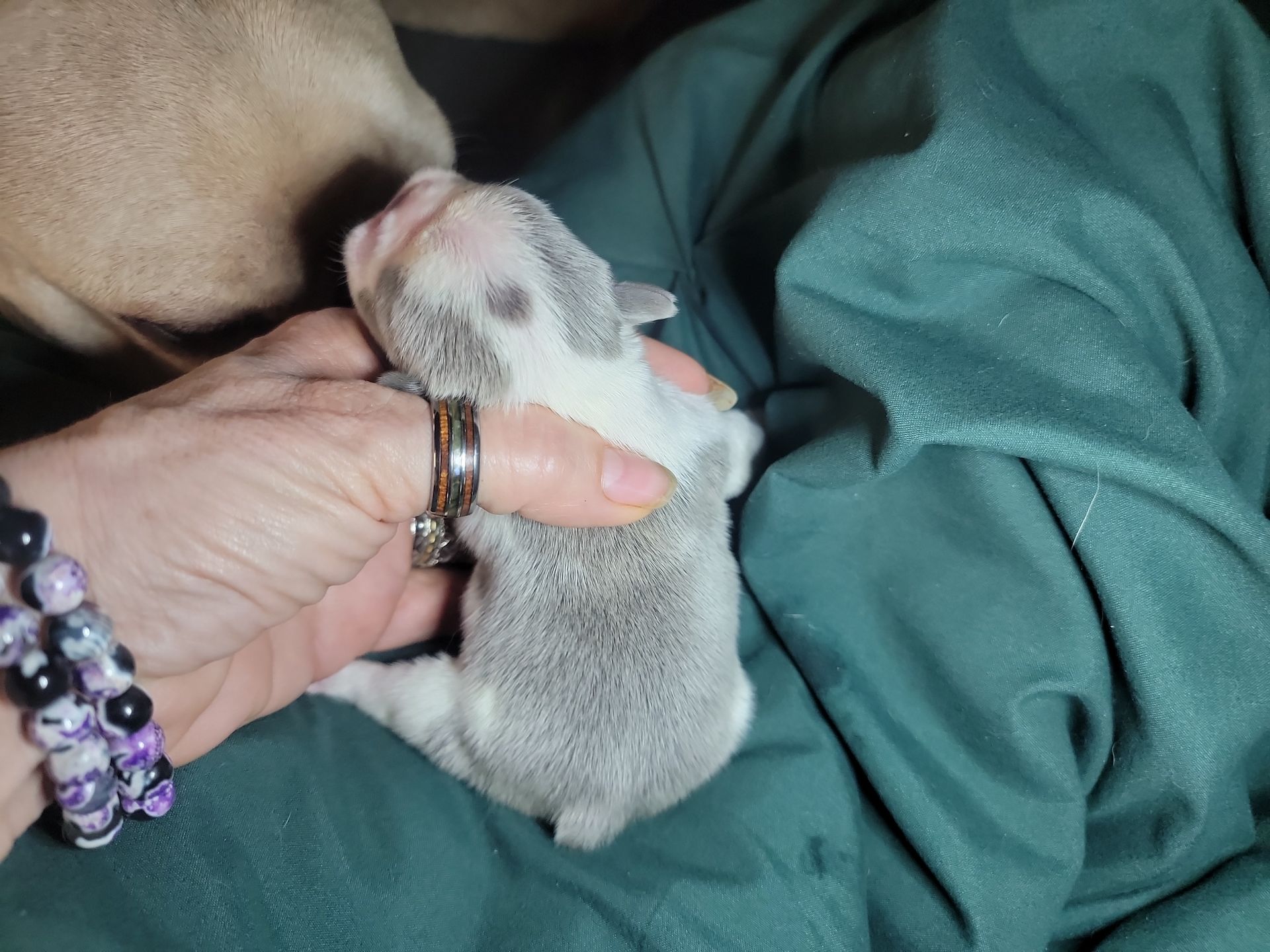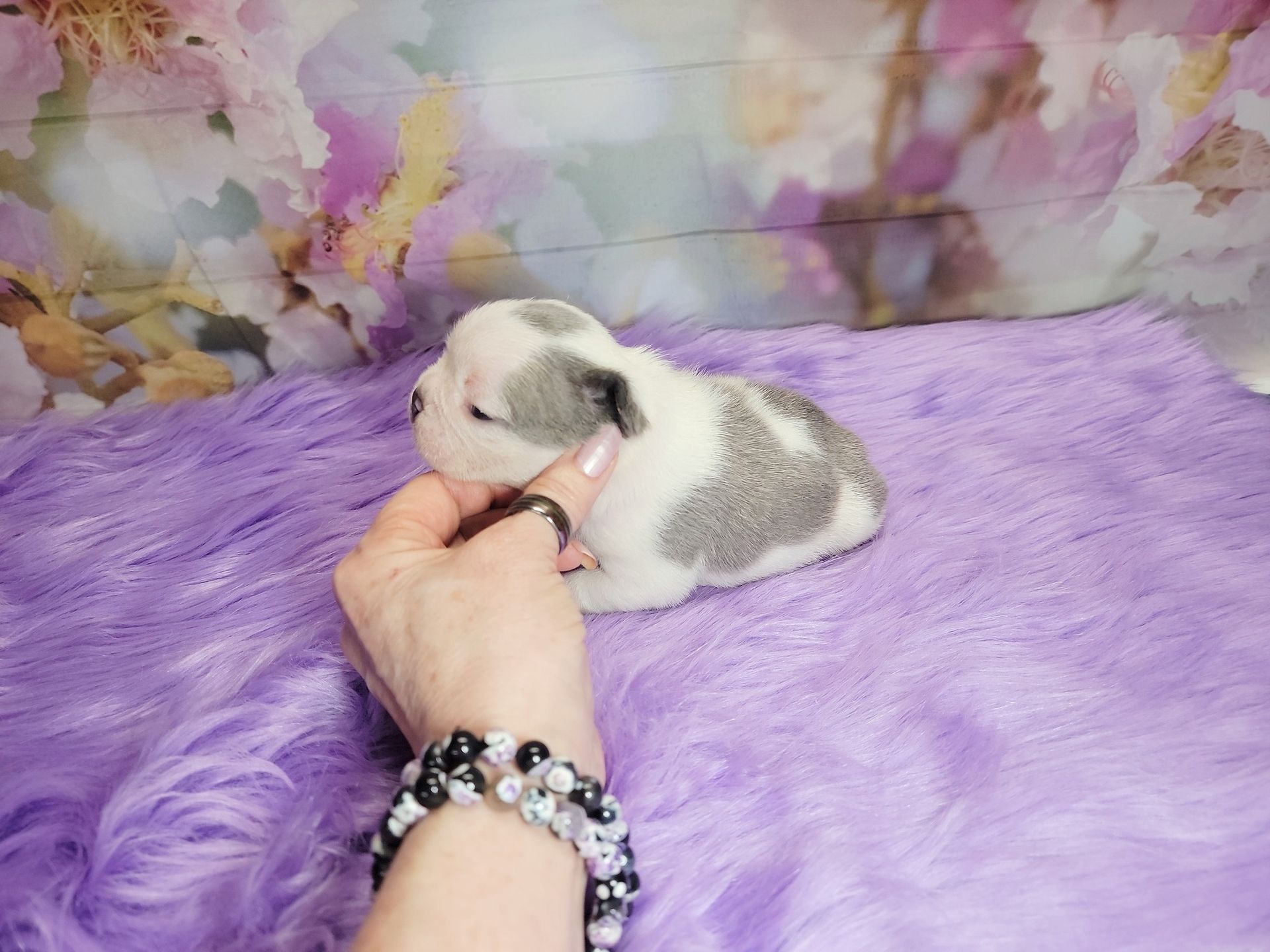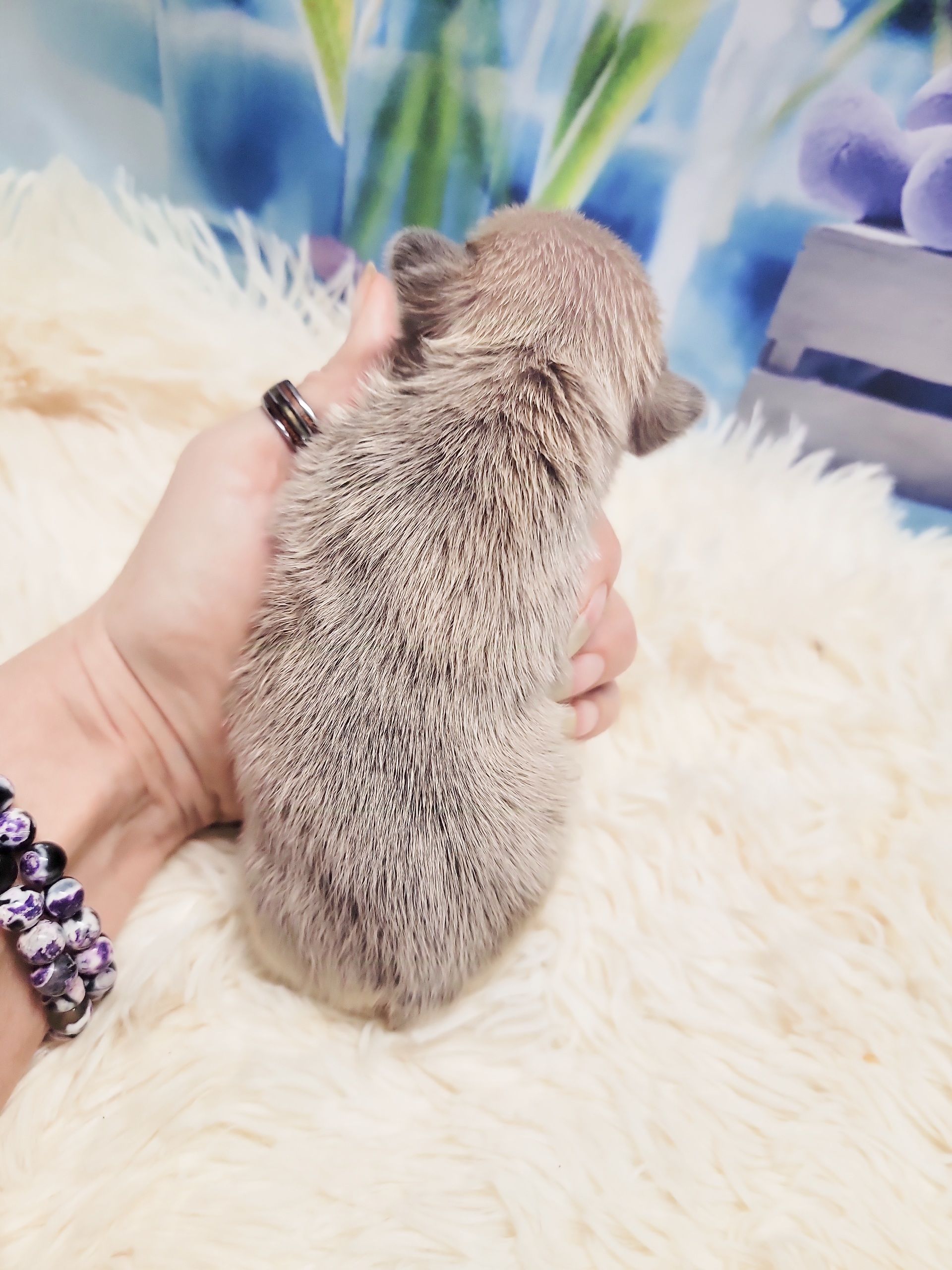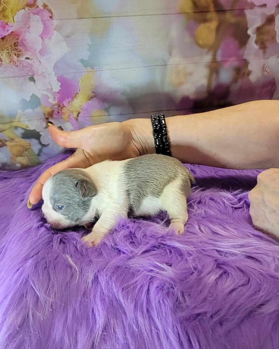 Size and Health: My largest French Bulldogs are Miniatures weighing 19-14 pounds. Pockets are 13-9 pnds and Itty-Bittys are 8 pnds and under. I am not aware of any breeders producing purebreds of such tiny sizes. There is no difference in looks, since they aren't cross-bred, just smaller. Just as stocky and healthy as larger sizes, ethically bred without health issues. Health is dependent on breeders who don't breed for health issues and over-vaccinate, it has nothing to do with size. You won't find healthier Frenchies than these, which are Holistically raised and die of old age, NOT health issues. I've never had a single Frenchie with Cancer. Pockets necessitate meticulous care, residing in the specialized incubator I have crafted for their unique requirements. They are under constant monitoring round the clock and are taken out for feedings every two hours until they grow bigger. I keep them until they are older, a minimum of three months for Pockets and even longer for Itty-Bitty Pockets. As far as I know, I am the sole breeder worldwide breeding purebred French Bulldog Pockets weighing 13-9 pounds and Itty-Bitty Pockets weighing 8 pounds and under.
