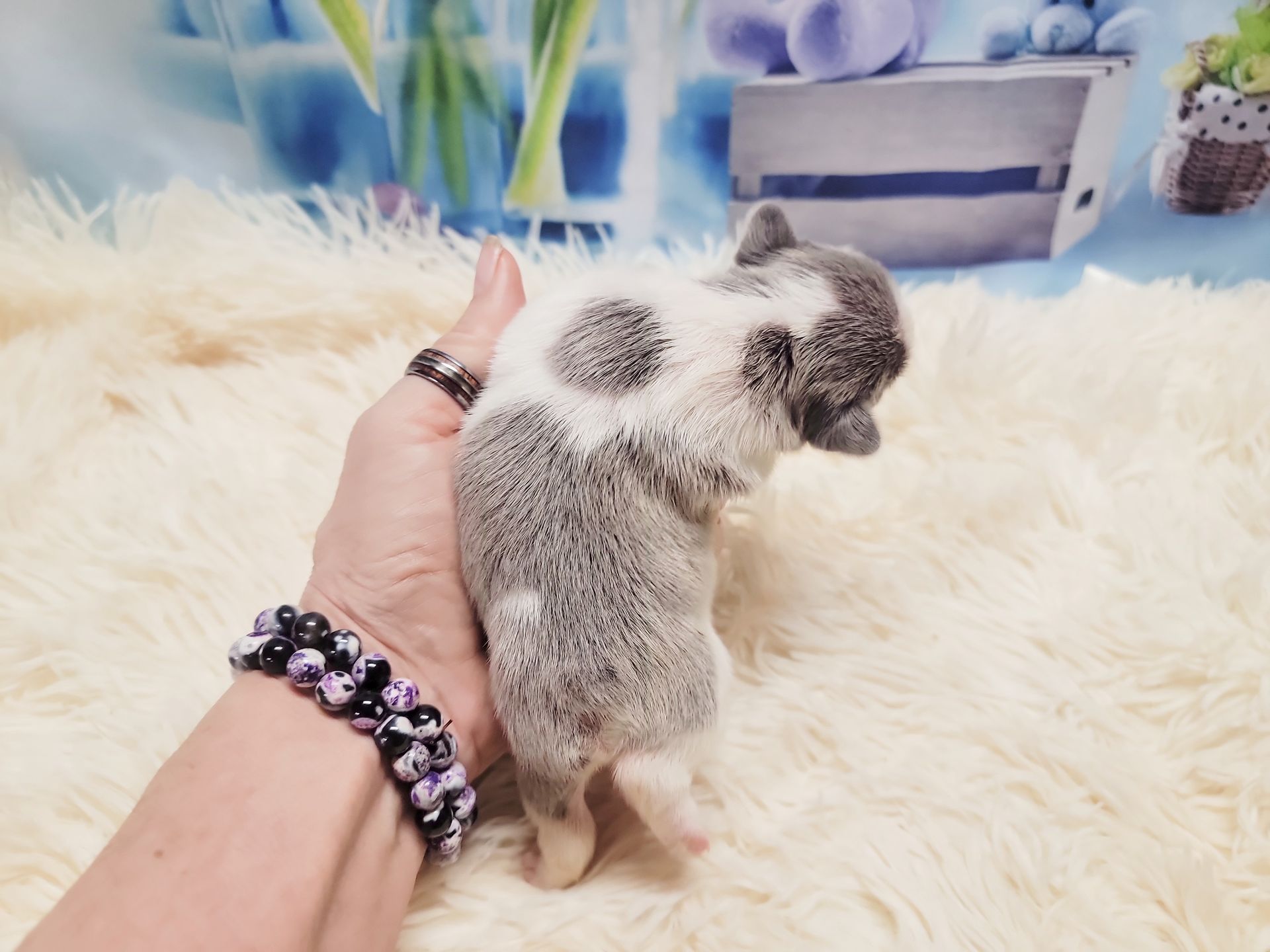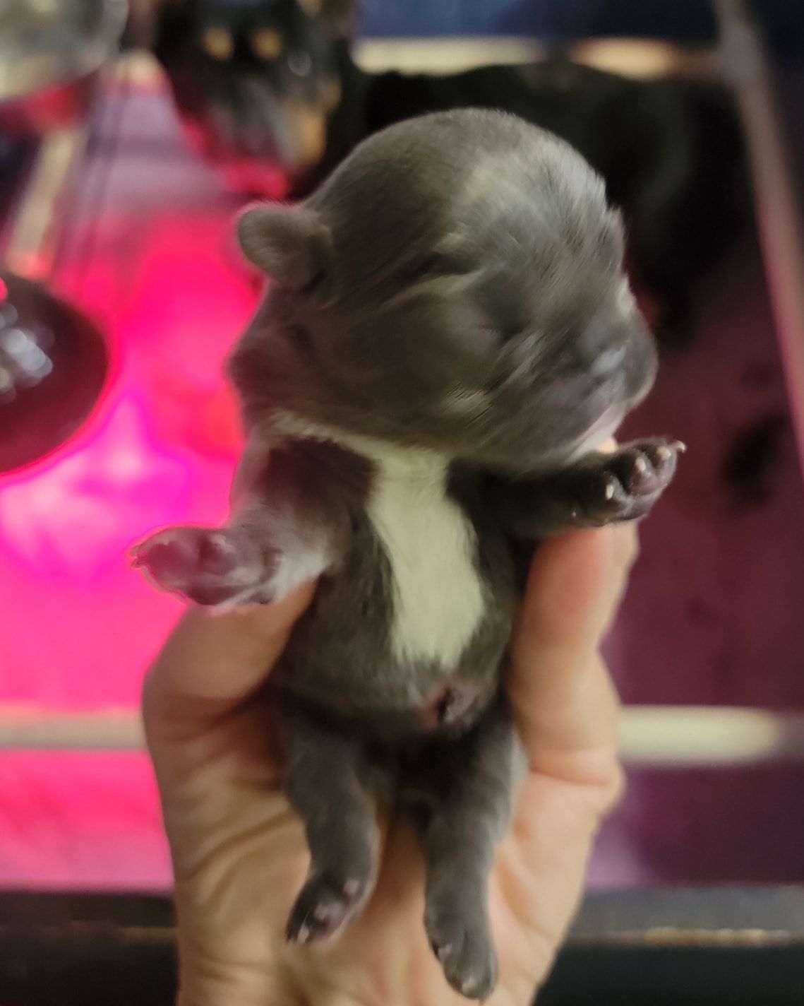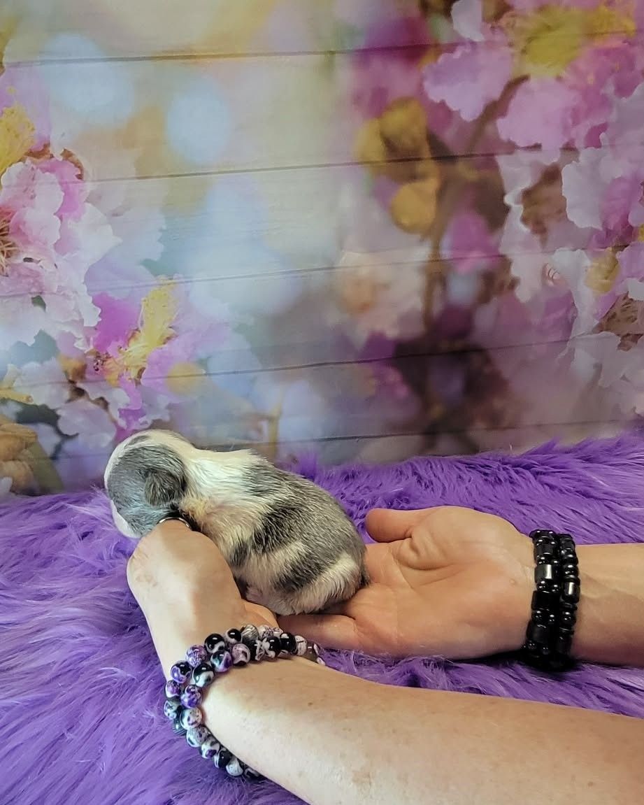 Rare: I don't know of any breeders breeding purebreds this small. Pockets require more care, staying in the incubator I designed for their special needs, monitored 24/7, they're brought out for feedings every two hours until bigger. I keep them until they're older, at least three months for pockets or longer for Itty-Bitty Pockets. Total is due at time of puppy choosing and with signing of contract at that time.