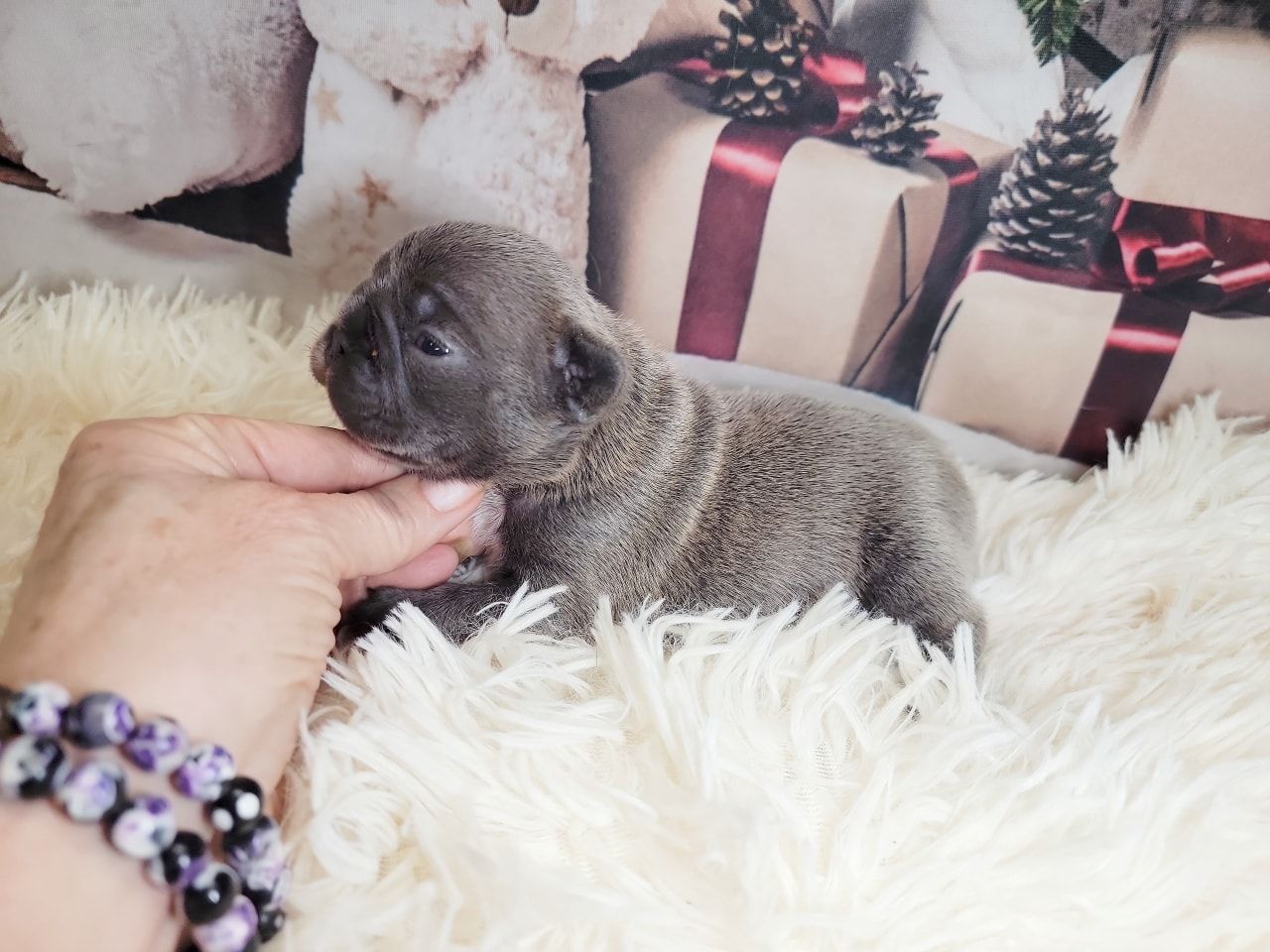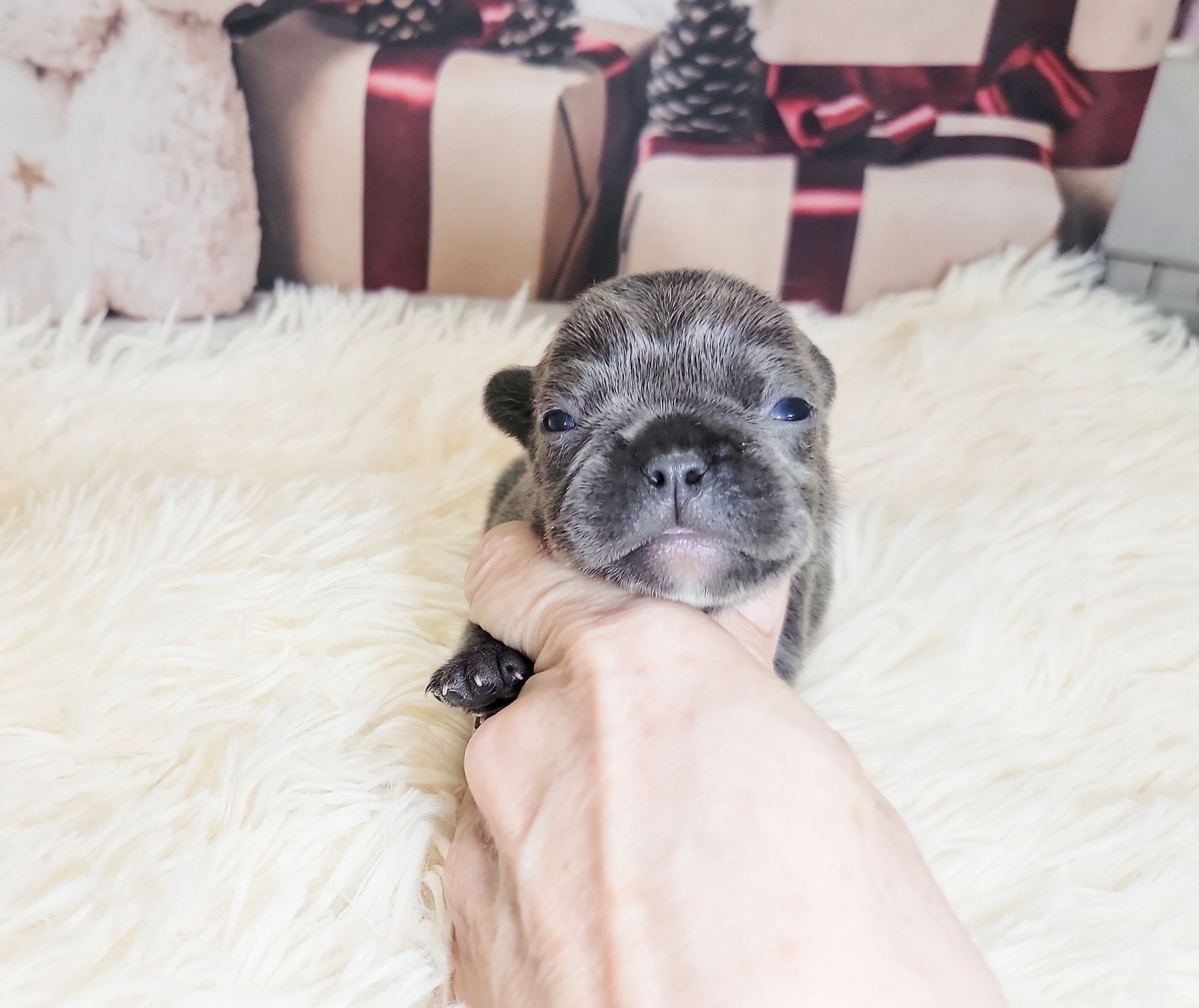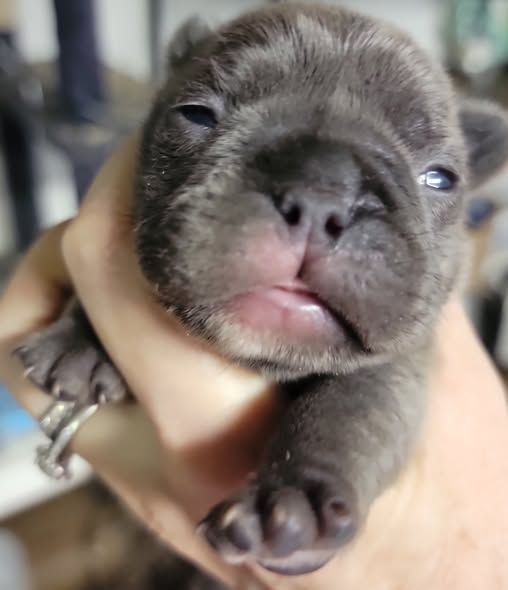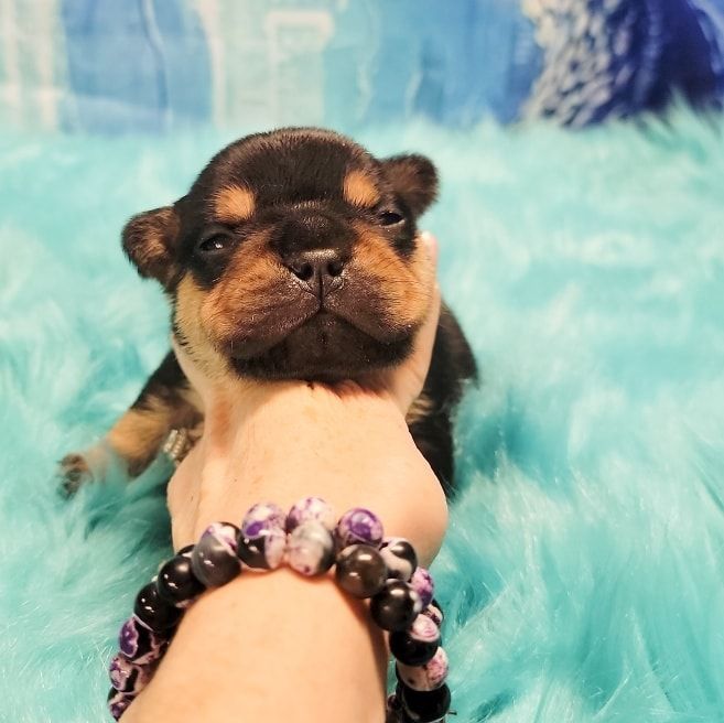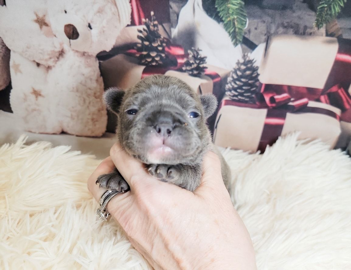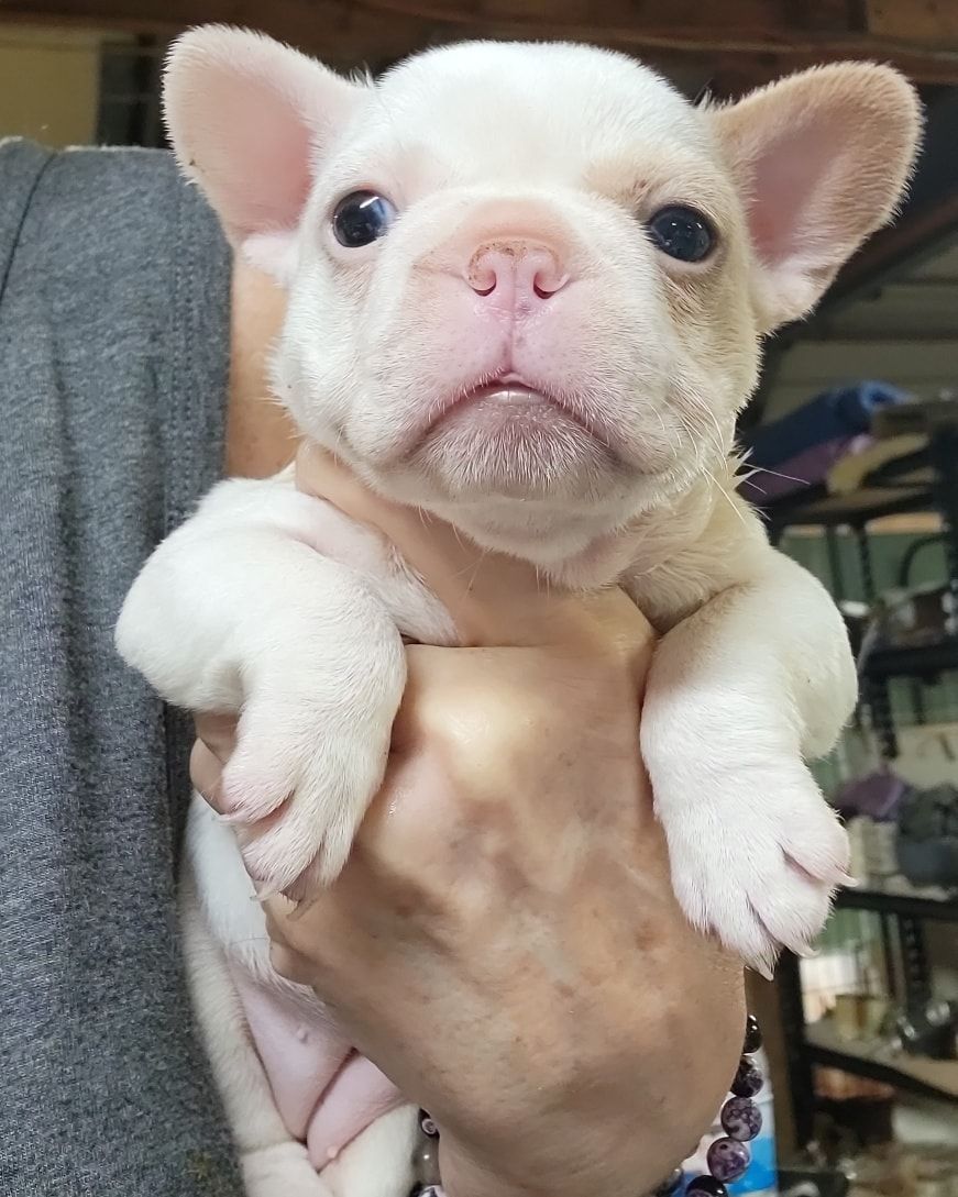 Pictured are same aged Mini, Pocket and Itty-Bitty Pocket. Also, Mini snuggling with Itty-Bitty Pocket in sleep. You'll find my minis are standard prices, comparable to other breeders breeding huge Frenchies. This is because they don't require any different care than larger Frenchies. If you're looking for something rare that nobody else has, then you're looking for the rare Frenchies you can't find anywhere else. I charge more for them because of the extra care they require, special equipment I had to invent to raise them, and because I keep them until they weigh two pounds, usually 3-4 months of age. I also send them home with a New Puppy Kit with all their daily supplement, Blueberry Shampoo and items to treat loose stools. You can upgrade this FREE kit to a big BullyBaum Daily Care & Emergency Kit which has all their Daily Supplements, Grooming Supplies and Everything to treat any Emergency that could come up in the lifetime of your Frenchie, including several things to treat things vet can't or have low success rate of curing like deadly viruses and deadly aspirated pneumonia which can strike quickly at any age. It's reassuring to have on hand everything to treat emergencies when every minute counts. If you are looking for a 30 pound regular Frenchie, there are hundreds if not thousands of breeders you can get one from. If you're looking for a Homeopathic, longer lived, healthier, rare sized Frenchie, then you've come to the right place. Purebred Itty-Bitty Pockets (under 8 pnds) are my newest size and only five of them alive to date. 2024 will be the first time they will be available to the public. I've been breeding for over 20 years, so the majority of my pups go to repeat buyers or those with deposits on my waiting list, but some become available so keep an eye on this page during litters. Financing now available and prices start at $4k for standard colored minis, and I also have buy now pay later. Long time followers and HDFrenchie owners on their Facebook page are very nice, and happy to talk about HDFrenchies, you're welcome to talk to anyone you want to. I suggest looking for the "Top Fan" badge to find owners or long time followers to befriend. Welcome, have a look around. You can text, phone or email if interested in one of the available pups. 775-267-7197 HDFrenchies@gmail.com
