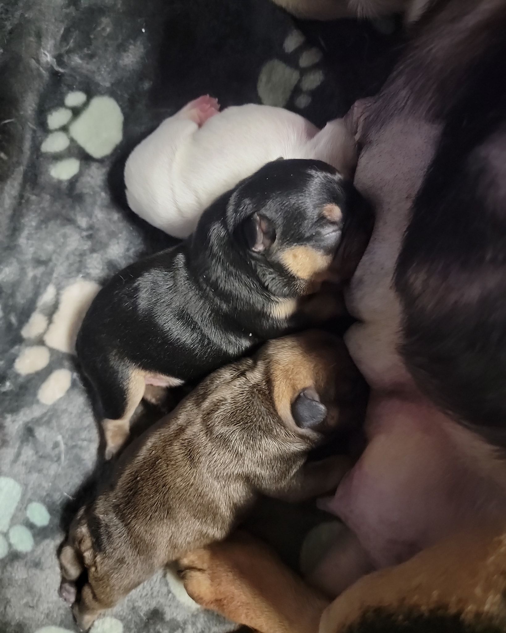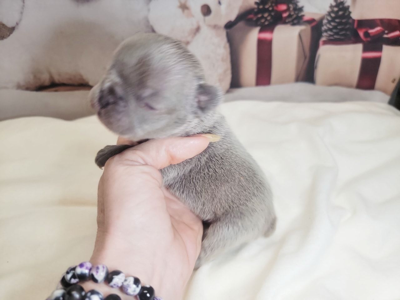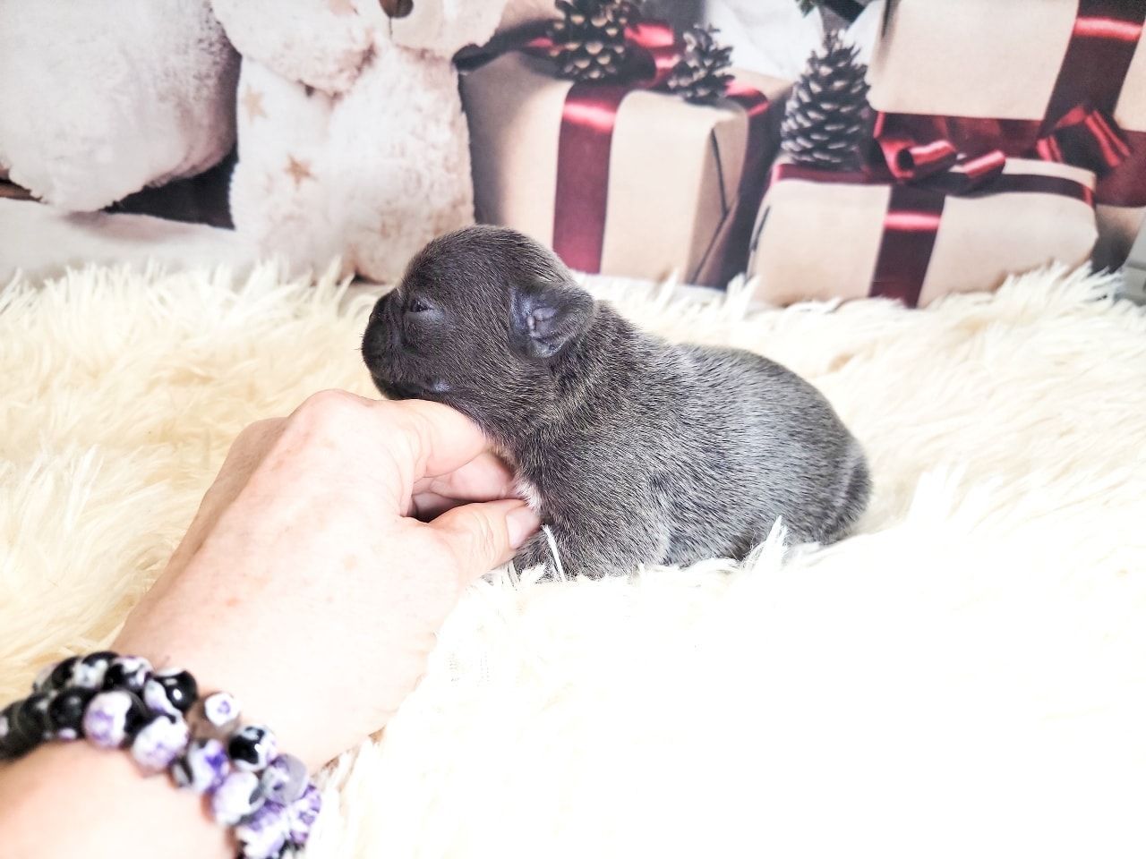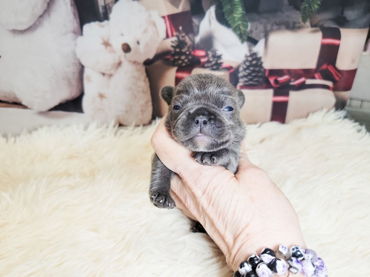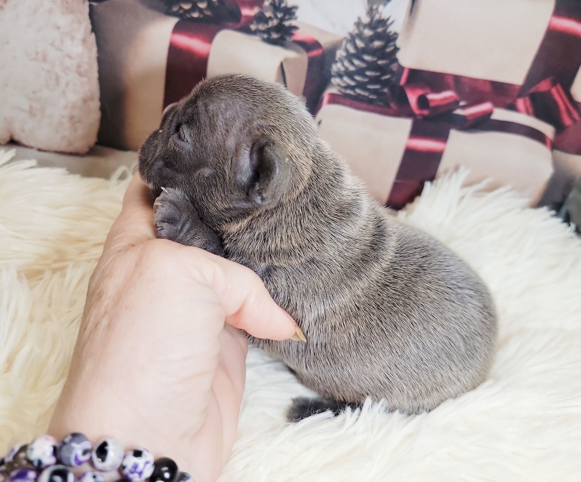 Pictured are same aged Mini, Pocket and Itty-Bitty Pocket. Also, Mini snuggling with Itty-Bitty Pocket in sleep. You'll find my minis are standard prices, comparable to other breeders breeding huge Frenchies. This is because they don't require any different care than larger Frenchies. If you're looking for something rare that nobody else has, then you're looking for the rare Frenchies you can't find anywhere else. I charge more for them because of the extra care they require, special equipment I had to invent to raise them, and because I keep them until they weigh two pounds, usually 3-4 months of age. I also send them home with a New Puppy Kit with all their daily supplement, Blueberry Shampoo and items to treat loose stools. You can upgrade this FREE kit to a big BullyBaum Daily Care & Emergency Kit which has all their Daily Supplements, Grooming Supplies and Everything to treat any Emergency that could come up in the lifetime of your Frenchie, including several things to treat things vet can't or have low success rate of curing like deadly viruses and deadly aspirated pneumonia which can strike quickly at any age. It's reassuring to have on hand everything to treat emergencies when every minute counts. If you are looking for a 30 pound regular Frenchie, there are hundreds if not thousands of breeders you can get one from. If you're looking for a Homeopathic, longer lived, healthier, rare sized Frenchie, then you've come to the right place. Purebred Itty-Bitty Pockets (under 8 pnds) are my newest size and only five of them alive to date. 2024 will be the first time they will be available to the public. I've been breeding for over 20 years, so the majority of my pups go to repeat buyers or those with deposits on my waiting list, but some become available so keep an eye on this page during litters. Financing now available and prices start at $4k for standard colored minis, and I also have buy now pay later. Long time followers and HDFrenchie owners on their Facebook page are very nice, and happy to talk about HDFrenchies, you're welcome to talk to anyone you want to. I suggest looking for the "Top Fan" badge to find owners or long time followers to befriend. Welcome, have a look around. You can text, phone or email if interested in one of the available pups. 775-267-7197 HDFrenchies@gmail.com