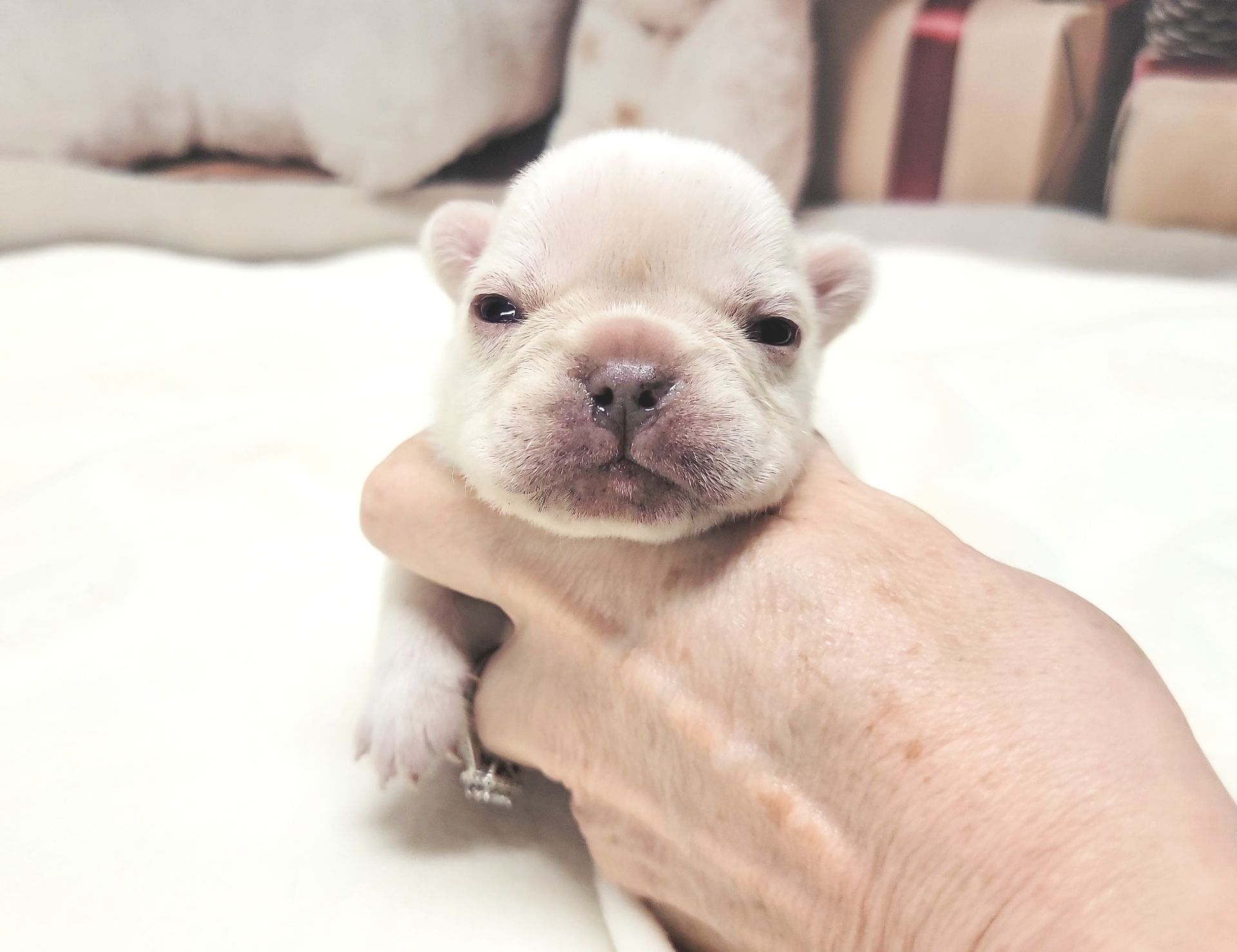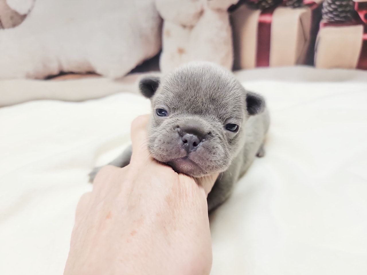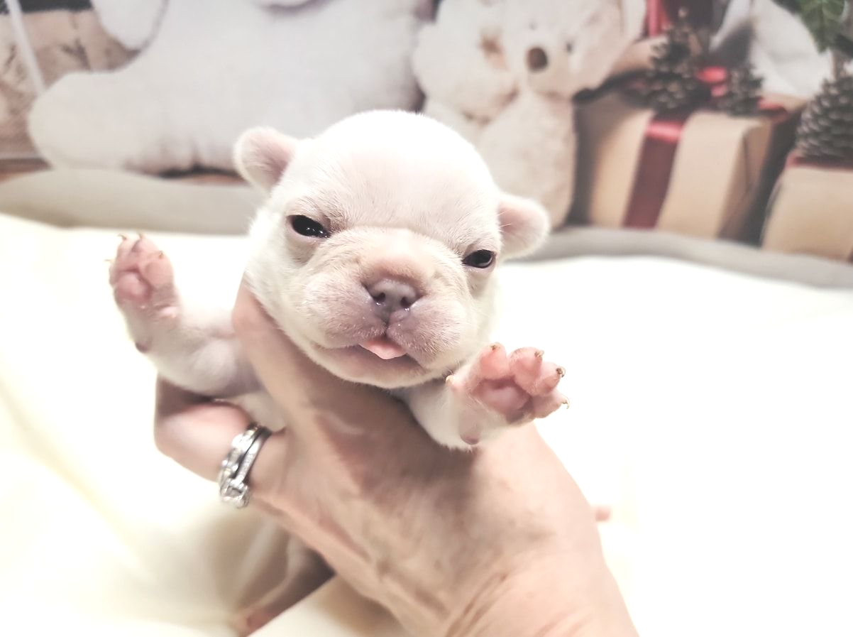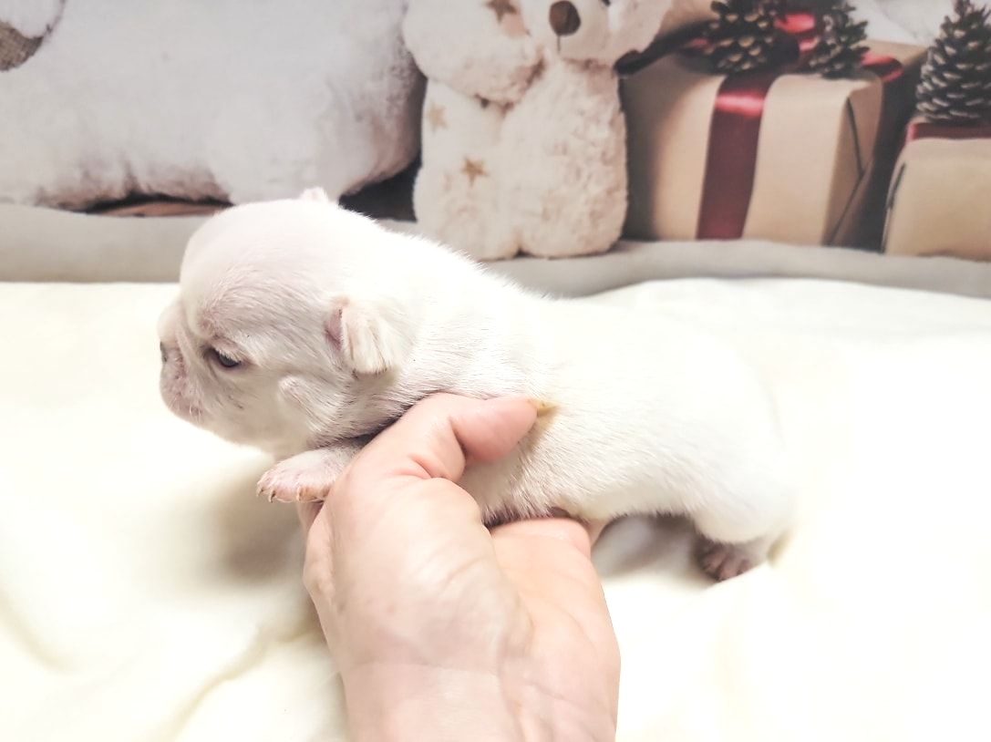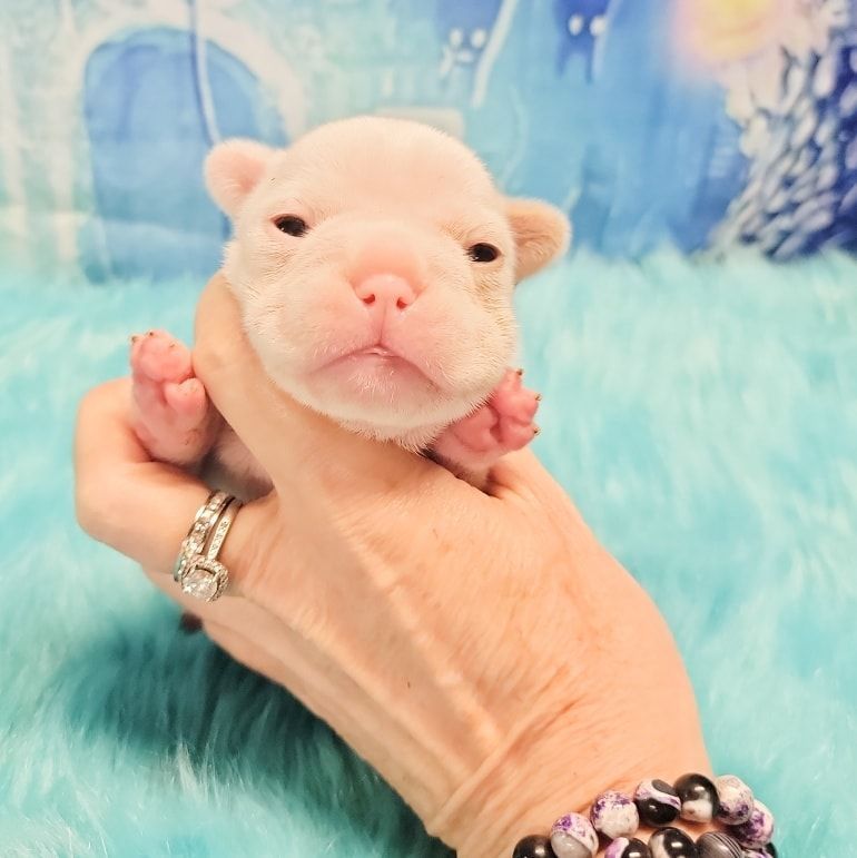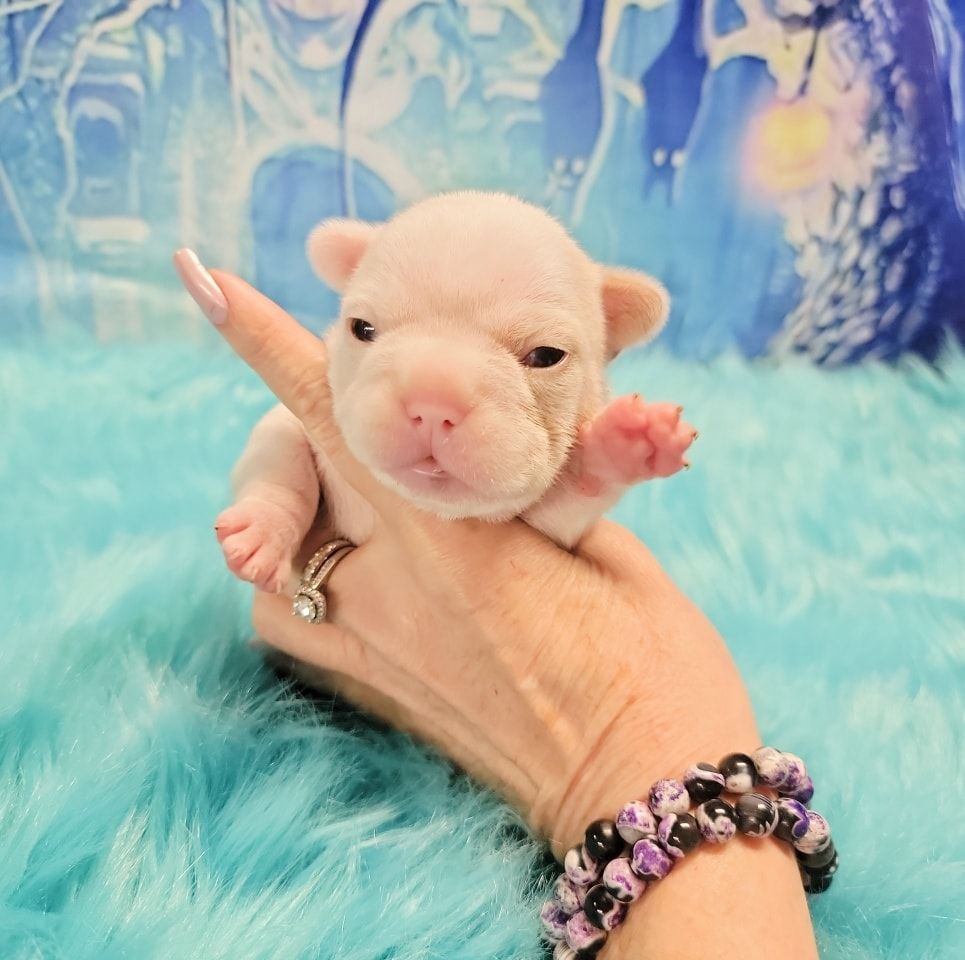 Size and Health: My largest French Bulldogs are Miniatures weighing 19-14 pounds. Pockets are 13-9 pnds and Itty-Bittys are 8 pnds and under. I am not aware of any breeders producing purebreds of such tiny sizes. There is no difference in looks, since they aren't cross bred, just smaller. Just as stocky and healthy as larger sizes which are ethically bred without health issues. Health is dependent on breeder who don't breed health issues and over vaccinate, not size. You won't find healthier Frenchies than mine, which are Holistically raised and die of old age, NOT health issues. I've never had a single Frenchie with Cancer. Pockets necessitate meticulous care, residing in the specialized incubator I have crafted for their unique requirements. They are under constant monitoring round the clock and are taken out for feedings every two hours until they grow bigger. I keep them until they are older, a minimum of three months for Pockets and even longer for Itty-Bitty Pockets. As far as I know, I am currently the sole breeder worldwide who is breeding purebred French Bulldog Pockets weighing 13-9 pounds and Itty-Bitty Pockets weighing 8 pounds and under.